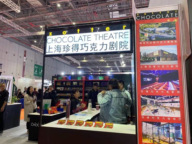 在上海珍得巧克力剧院展区有不同口味的巧克力可供品尝,草莓口味、牛奶口味、黑巧克力……还是不同浓度的黑巧哦。