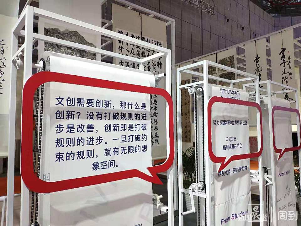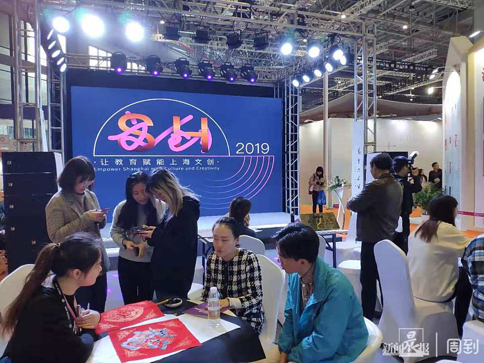 上海交大文创学院的周斌教授将自己在美国、欧洲传播书法艺术的体验课堂搬进了文博会展区。