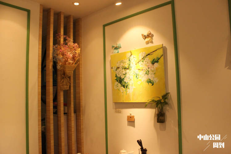 “这幅壁画是羊羊的女儿请朋友们画的,很可爱吧?”天星指着盥洗室墙面上的“狼与羊”卡通壁画介绍道。仔细看会发现,店里很多关于“羊”的元素,每一处几乎都能看到羊羊的一些“小心思”,竟让人觉得这个退休了的老先生内心住着个小孩子。