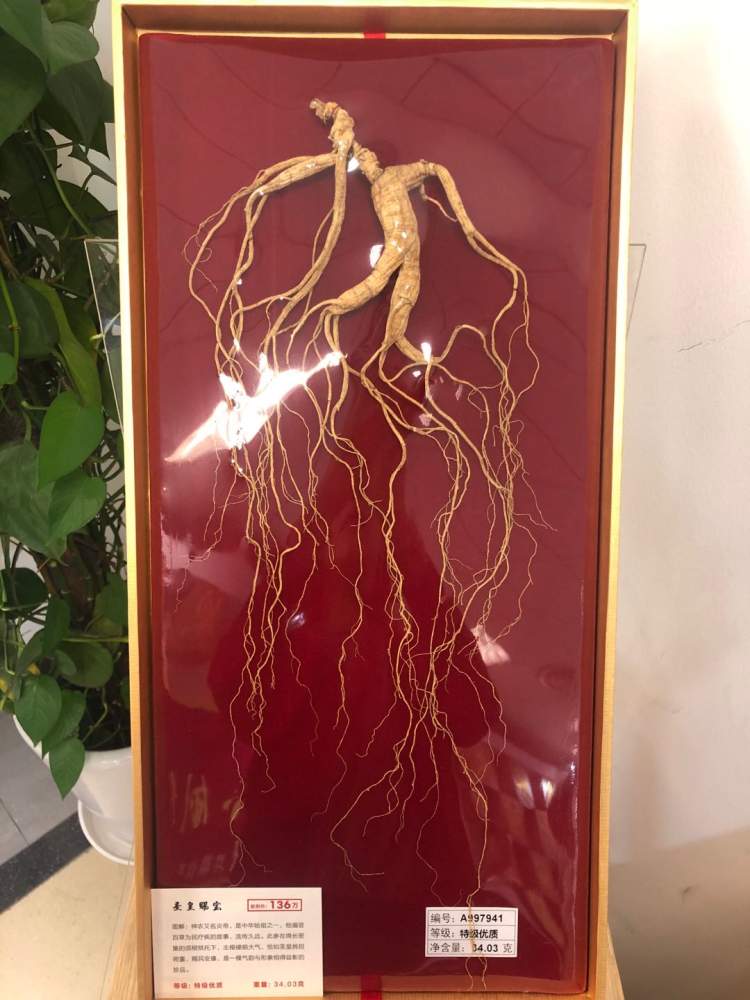 今天,在上海中药行业野山参文化节,一支价值136万,重量为34.03克的野山参吸引了很多人的目光,外形犹如仙人神物,饱满润泽,金黄灿灿,虬须飘逸,身姿舒展,仪态万方。