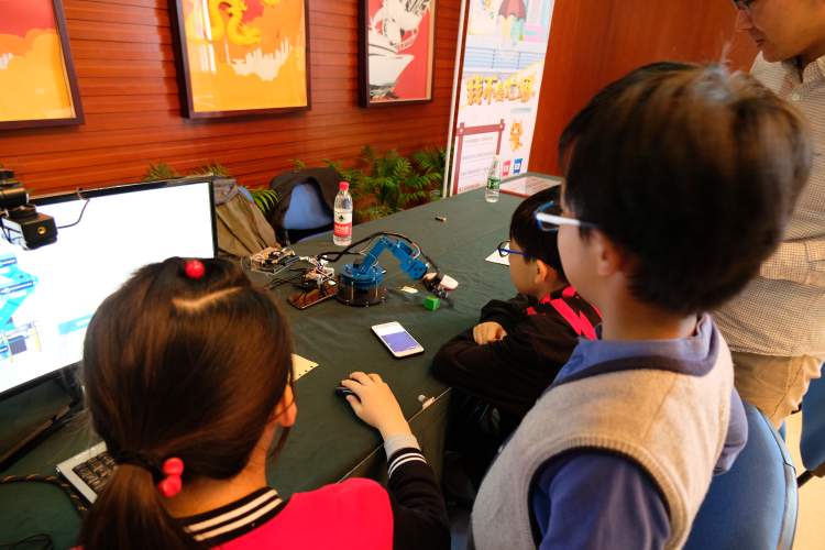 大师讲堂的现场,“大国小工匠”为家长准备了木匠、中医药剂师、智能垃圾分类三大年度精品体验活动。从中药识别、木工物件的拼接到人脸识别、机械臂简易分拣,体验区也是热闹非凡。