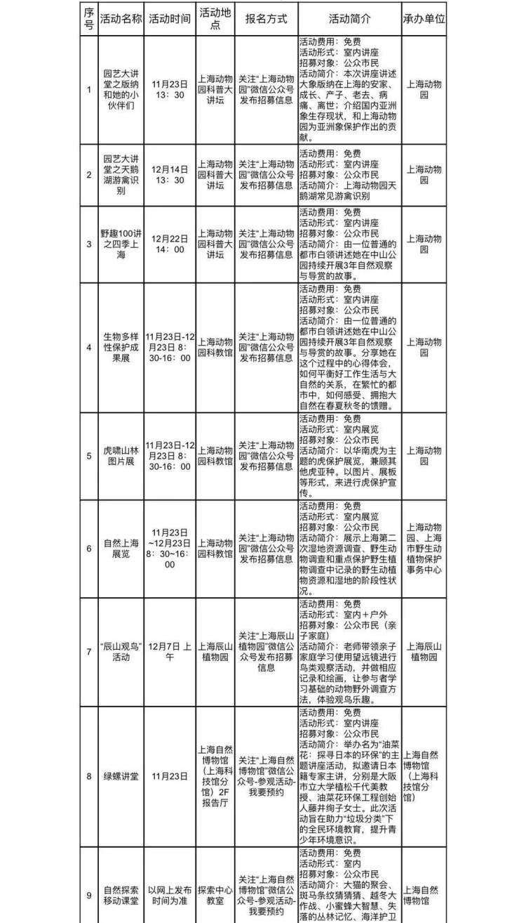 附:2019年上海市保护野生动物宣传月系列活动指南