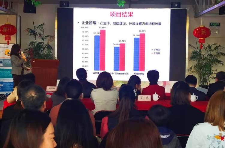 此次活动现场首次发布了该项目总结报告的主要内容及结论,报告显示:通过针对包括位于金山区的四家企业在内的11处场所进行调研及科学干预,各场所上下班骑行电动自行车驾乘人员的有效头盔佩戴率(使用并系紧扣带)从63.6%上升到71.3%;无效佩戴率(使用但未系紧扣带)从5.7%下降到2.9%;未佩戴率从30.7%下降到25.8%。