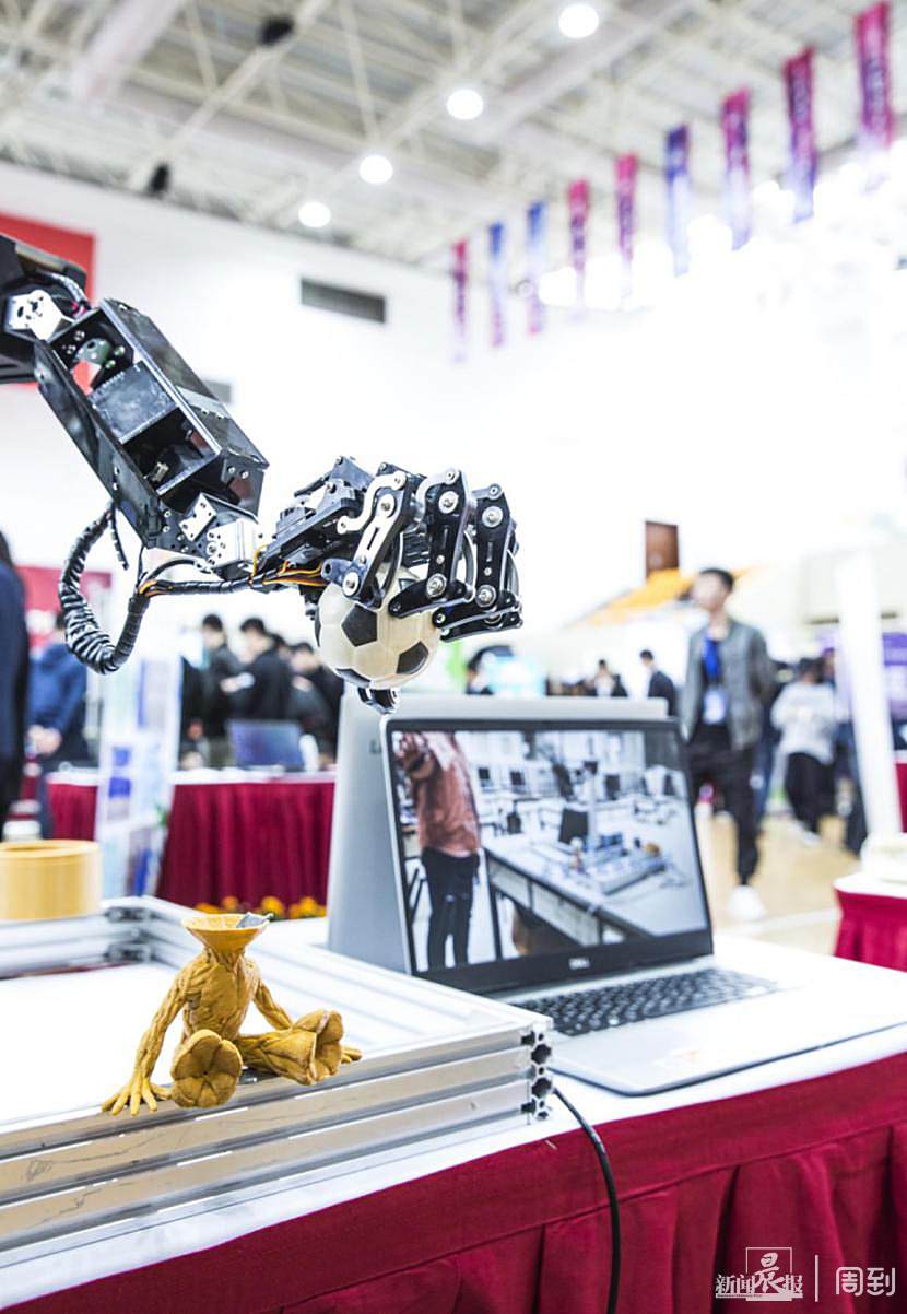 上海建桥学院的复杂空间作业体感机械臂获一等奖,它可以运用于地质勘探、塌方空间救援补给任务中。