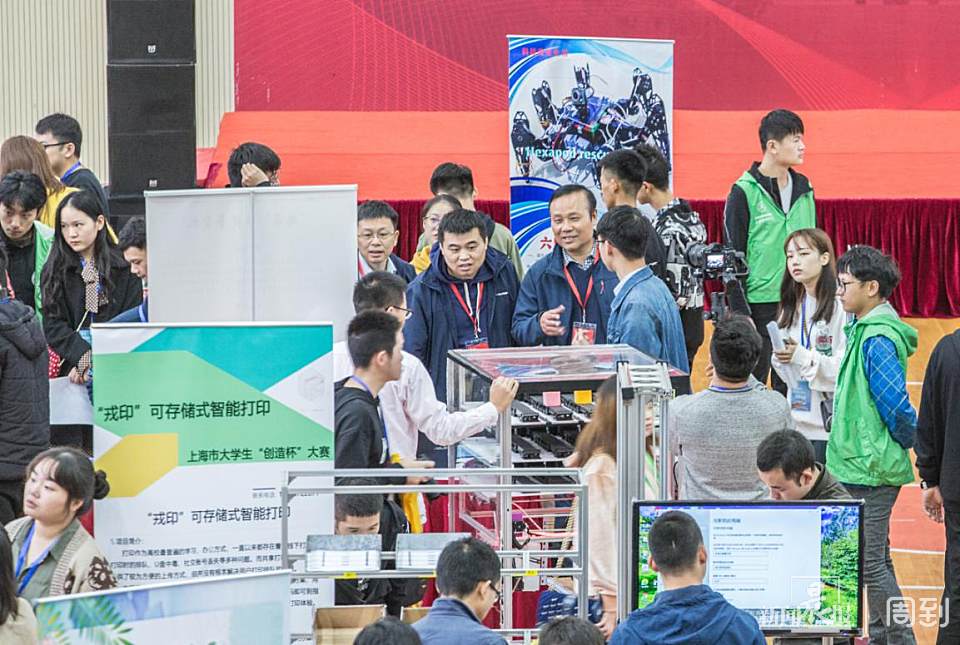 老年人辅助起身旋转床、智能分类垃圾箱、快捷餐食机、可模拟人手的机械臂、解决传统农业中二氧化碳施肥法的装置……,一大波大学生的“发明创造”本周末在上海建桥学院举办的上海市大学生“创造杯”大赛上一一亮相。