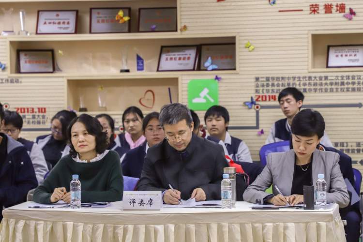 在华东政法大学附属中学(以下简称:华政附中)的校园,第五届上海市高中生法治辩论邀请赛鸣锣开战。参赛队伍都是在历年法治辩论赛中取得佳绩的辩论队,他们是嘉定二中、上海财经大学附属北郊高级中学、市西中学、七宝中学、桃浦中学、回民中学、敬业中学、市八中学、上海外国语大学附属浦东外国语学校、建平中学、崇明中学和华政附中辩论队。