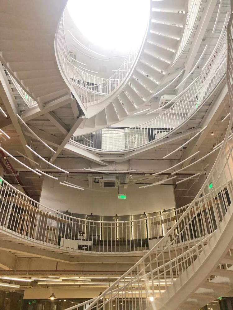 最吸引人眼球的莫过于中间的白色旋转楼梯了,一路旋转而上,直至顶楼,分分钟拍出大片的感觉!