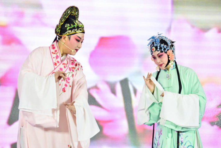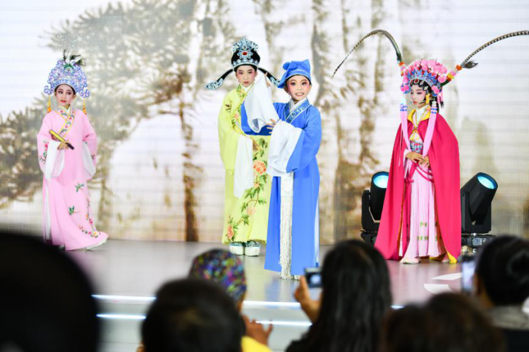 越剧,被誉为中国第二大剧种,长于抒情,将戏文中的爱恨情愁唱与世人听,声音常常优美动听,表演富有灵秀之气,在国外也被称为“Yue Opera”(中国歌剧)。而当舞台上出现一群稚嫩的身影,一张口那清丽嘹亮的声音在现场久久回响,一下子就吸引住来来往往的行人,人们不由得驻足观赏。