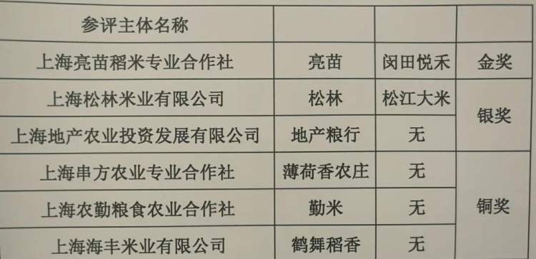 “安信农保杯”2019年上海地产中晚熟优质大米评优结果