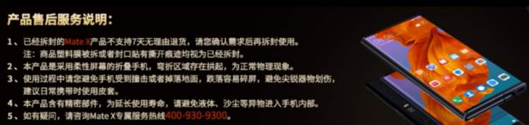 华为官方的售后说明显示,已经拆封的Mate X产品不支持7天无理由退货。商品塑料膜被拆或者封口贴有撕开痕迹均视为已拆。因此,用户想要只尝鲜后退款是不可能的。
