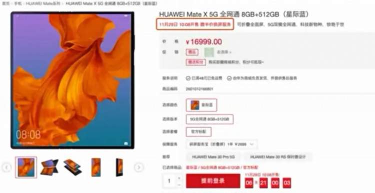 官方消息显示,华为Mate X将在11月29日10:08再次开售。此次开售依旧是限量抢购,准备购买新机的小伙伴,务必提前定好闹钟。