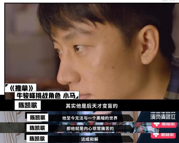 原来在腾讯视频播出的《演员请就位》第七期上,明道作为陈凯歌战队的演员,参演了陈凯歌指导的《推拿》段落。