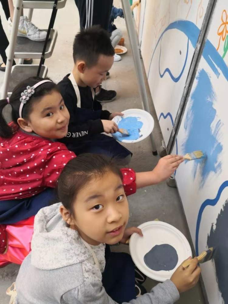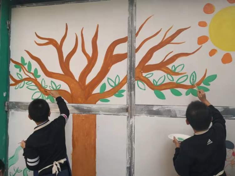 活动前,两位美术学院的学生先在大门上细心勾勒出精细的线稿,随后参加本次活动的“小画家们”在专业老师的指导下,手拿画笔和颜料,在大门上涂抹上艳丽的色彩。