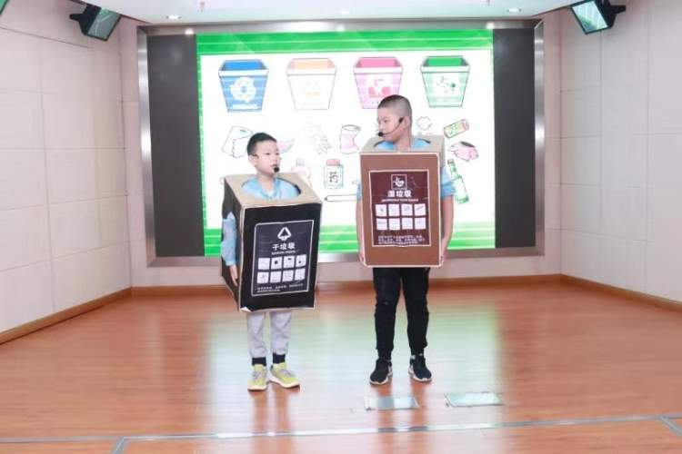 小志愿者们首先经过了居民区的垃圾分类英文讲座培训,在趣味互动过程中掌握了上海垃圾”四分类“的环保小知识才正式上岗。