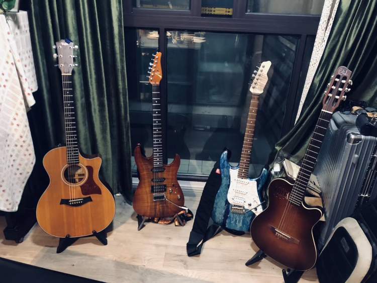 彼时魏嵩才在街头演出了四五次,但已经为此增添了一大堆设备,新买的吉他就要一万多。而魏嵩的房间里有11把吉他,最贵的一把超过四万。每次演出前,他会根据演出需要的音色效果,选择对应的那把琴。