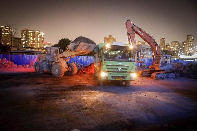 与滨江步道仅隔一道铁皮围墙的空地,夜里竟成了建筑垃圾分拣场?