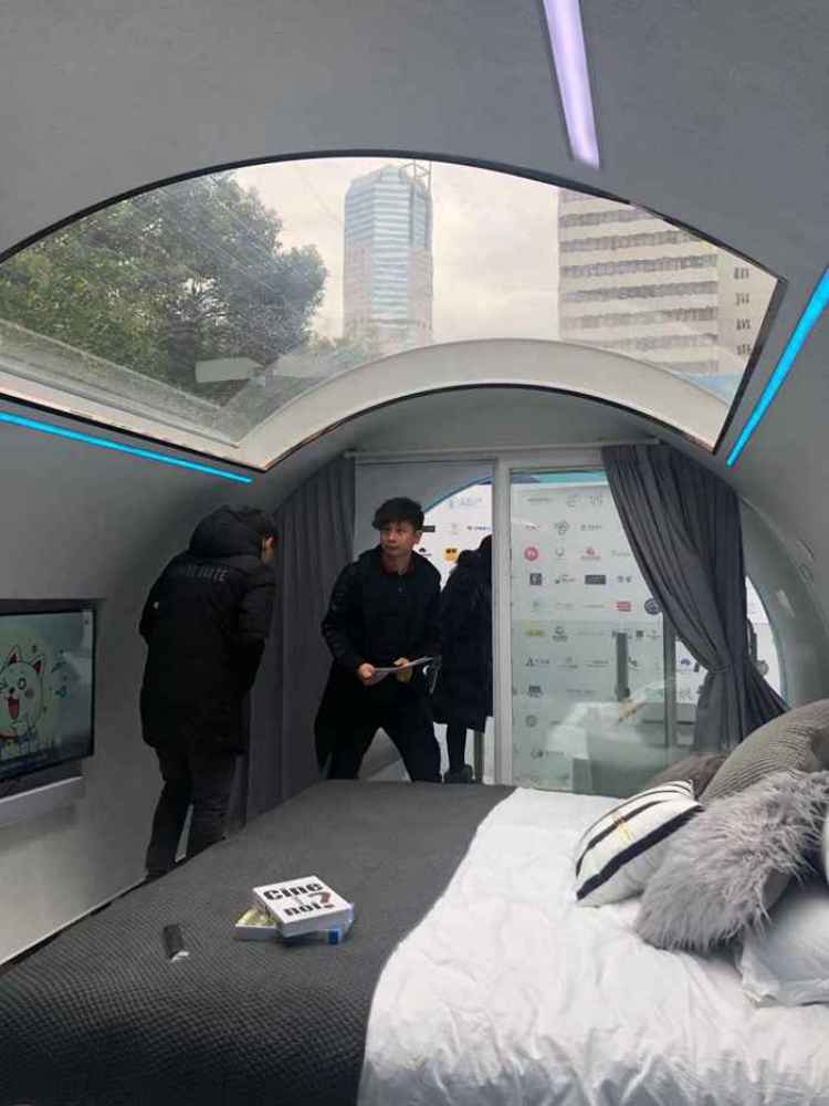 仿佛巨大的一根白色管道,但经过人脸识别入内后,你会发现这是一处奇妙的“洞洞屋”——里面不仅有着舒适的席梦思、盥洗室,透明的天窗还能根据入住者的意愿自由拉启;一旁的“蛋壳屋”全身透明,麻雀虽小五脏俱全……这两天在上海世贸展馆,各种各样好玩有趣的“居住体验”令人大开眼界。
