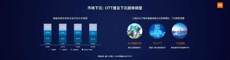 此外,OTT普及下沉趋势明显,三线及以下城市智能电视占比持续增长。正如4G+智能手机带动了移动互联网的发展,5G+OTT的继续下沉,将撑起家庭大屏互联网经济。