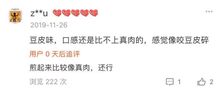 为此,周到君特意去看了看购买了人造肉的网友评价,果然有些新发现。