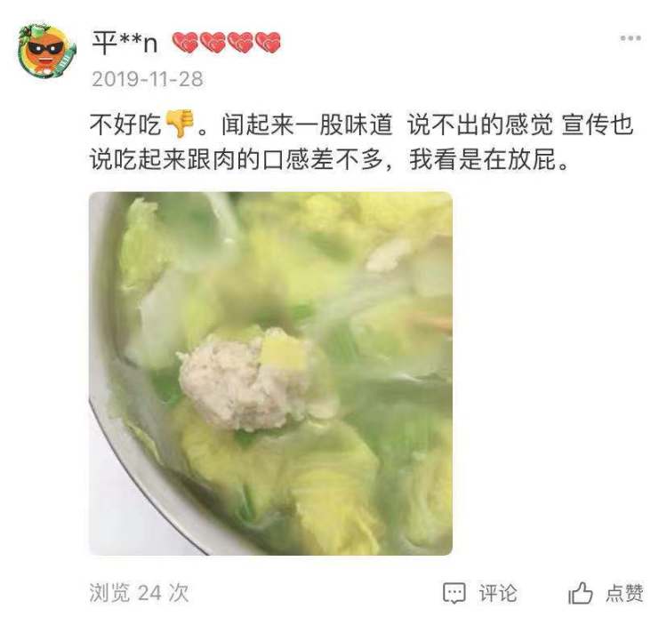 网友评价不一:“豆子味道”“不好形容”“比真肉还好吃”
