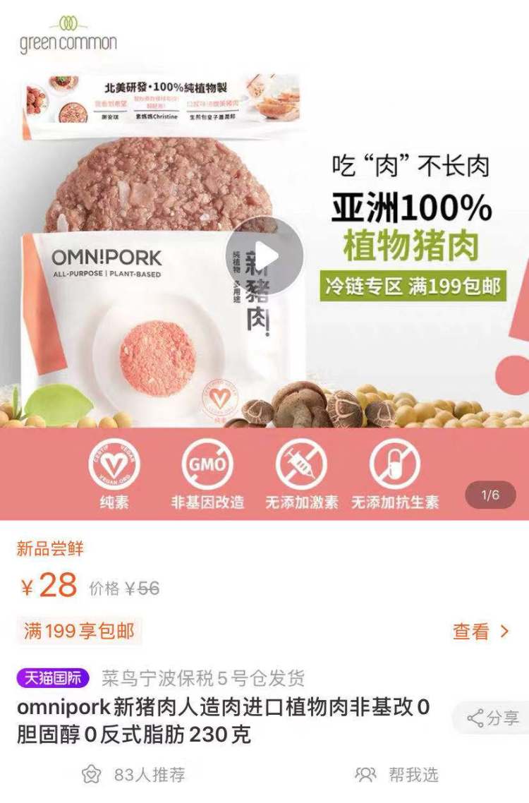 此次在天猫国际正式开售的“人造肉”来自Omnipork品牌,产品叫做“新猪肉”。