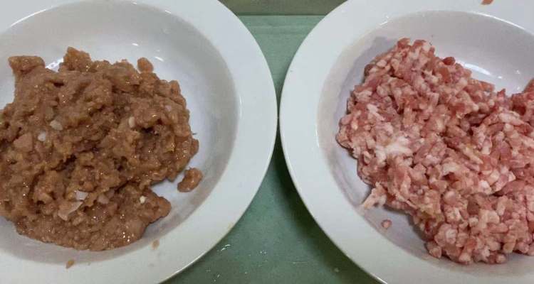 人造肉因为使用植物蛋白制作,所以肉质更有纤维感;而猪肉的肉质则更细嫩,Q弹一些。