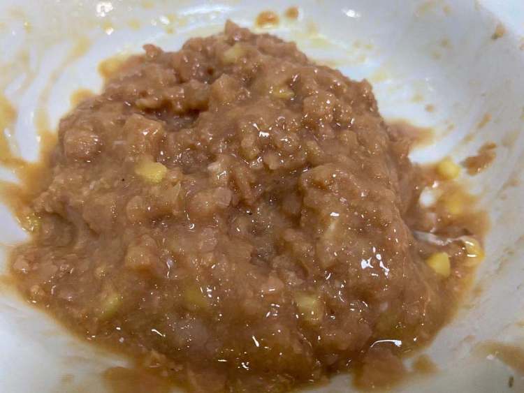 这款名叫“新猪肉”的人造肉一开袋就能看到是肉糜的状态,和周到君买的普通猪肉糜相比,颜色要更深,小伙伴看到肉色甚至疑问:这是不是用酱油拌过呀?