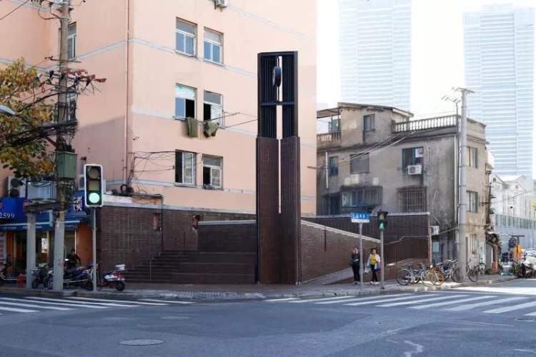 其中,钢架结构与红砖砌块建构而成的钟塔代表了“绝对时间”,随着时间的推移,高处的阳光与钟塔投下的阴影线条时刻的变化,给人以时空流动之感觉,而每日太阳的东升西落,则是永恒的绝对时间。钟塔最上端的时钟代表的是“人工时间”,为周边居民提供一种共同记录时间的方式。而代表“历史时间”的,是三道矮墙,它们分别指向中西医结合医院、犹太难民纪念馆和提篮桥监狱三个蕴含着北外滩集体回忆的重要历史建筑。规划师团队通过对这三个历史建筑的调查研究,最终确定了三个与之有关的重要历史时刻。三个历史时间分别印刻在三道矮墙上的混凝土压帽上,同时钟塔塔身抽象而成的日晷在三个历史时刻,与太阳形成的阴影恰与矮墙轴向方向重合。