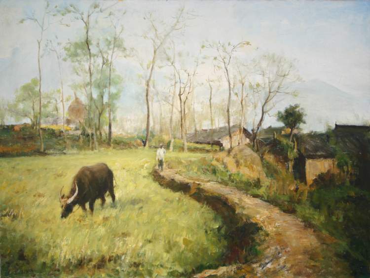 他回忆说:“颜文樑先生对我们讲,学西画的学生一定要懂得中国画、中国的文化传统。为什么?这是我们中国人文化的根,你的花、你的茎、你的叶都是从根往上长的。没有根一切都站不住。我们中国的油画家会自然形成一个学派,是中国风格的油画家。”