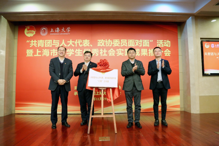 活动现场,上海高校首个“共青团与人大代表、政协委员面对面”工作室——“汇智”工作室揭牌,在人大代表、政协委员与青年学生之间搭建起沟通的桥梁,借助制度平台和渠道,引领青年学生服务城市发展,投身国家建设。