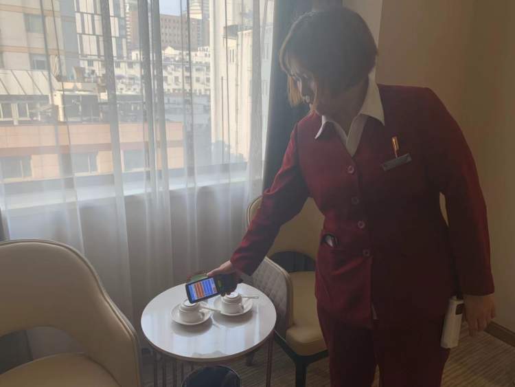 实行智能管理系统后,保洁员在开始进行客房清洁时,每完成一件物品的更换与清洁时,都要进行扫码确认。18件物品全部确认后,后台才会显示整个清洁过程完成。据保洁员介绍,完成一间客房清洁的时间约为40分钟,比之前多了5分钟左右。智能化管理,是否会增加服务人员负担呢?