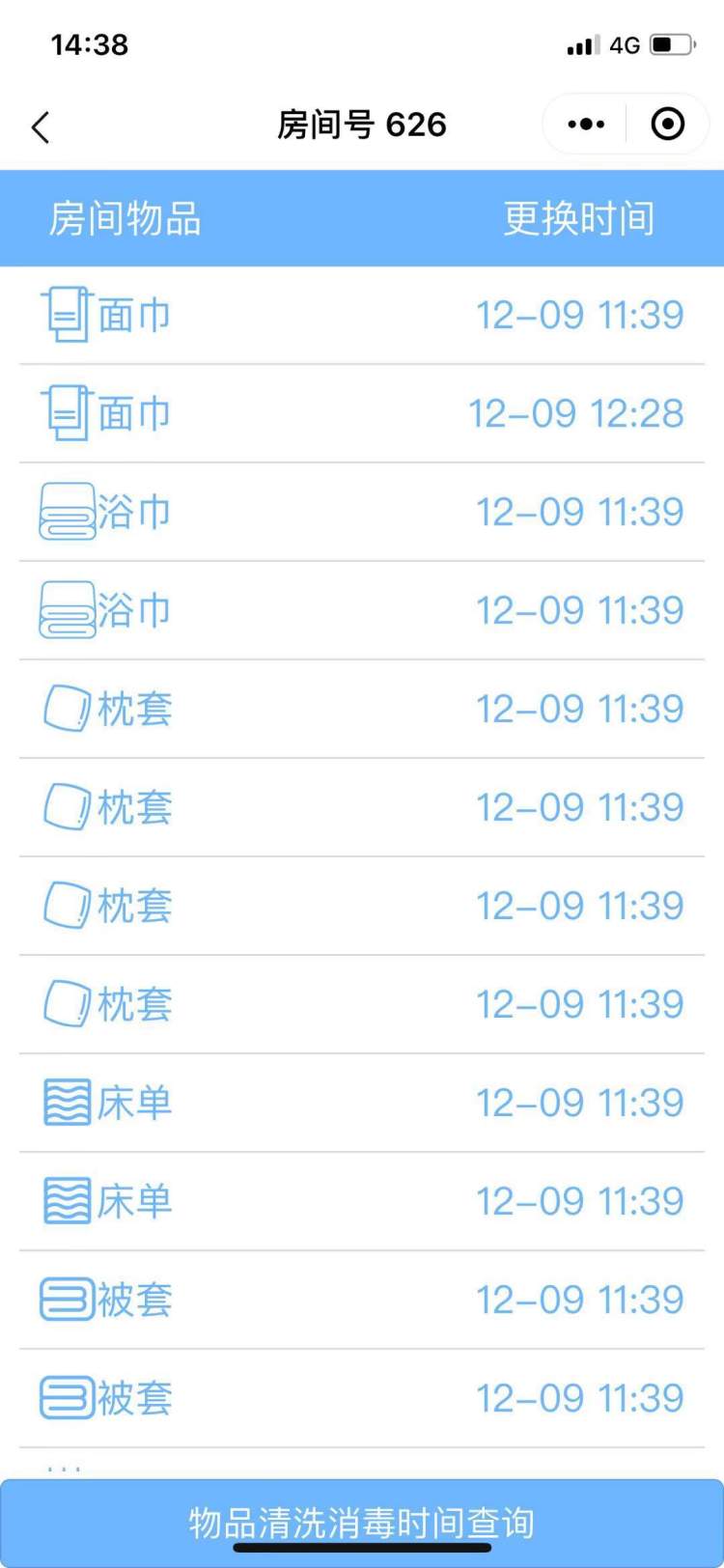 18件客房用品扫码可知更换情况
