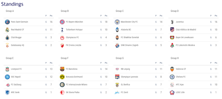 在A组,实力碾压,大巴黎与皇马携手出线;B组,拜仁六战全胜创造队史最佳欧冠小组赛战绩,热刺稳扎稳打位列第二;C组,曼城保持不败金身,亚特兰大捍卫蓝黑尊严;D组,尤文小试牛刀,马竞成西甲全员晋级16强最后一块拼图。