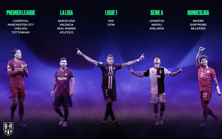 除了占据半边天的西甲和英超,其他八支球队实力同样不容小觑,意甲有尤文图斯、亚特兰大和那不勒斯,德甲有拜仁、莱比锡红牛及多特蒙德,法甲则有里昂和大巴黎两支劲旅。