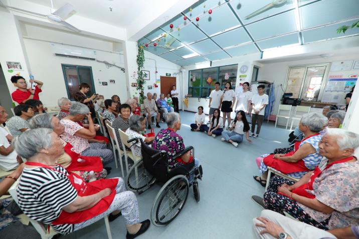 2019年8月1日,建行上海市分行迎来了“金智惠民”年龄最大的学员,今年89岁的林爷爷。在松江区“幸福老人村”,建行的员工们为当月过生日的老人们庆生共唱生日歌,宣传如何识别和防范金融诈骗。