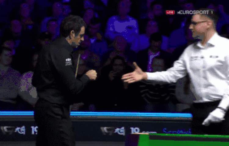 但在赛前及赛后的握手环节,奥沙利文面对前来握手的裁判和卡希尔,没有选择张开手掌迎上,而是攥起拳头,改成了碰拳致意。