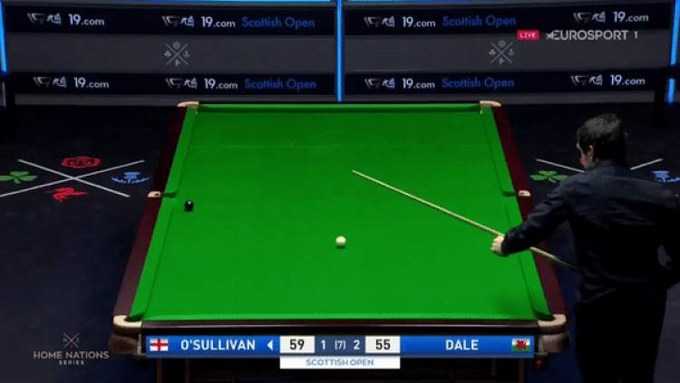 在第一轮面对戴尔的第四局比赛中,已经稳操胜券的奥沙利文在处理最后袋口的黑球时选择暴力击打,最终使母球飞离台面,让大比分来到了1-3的绝境。