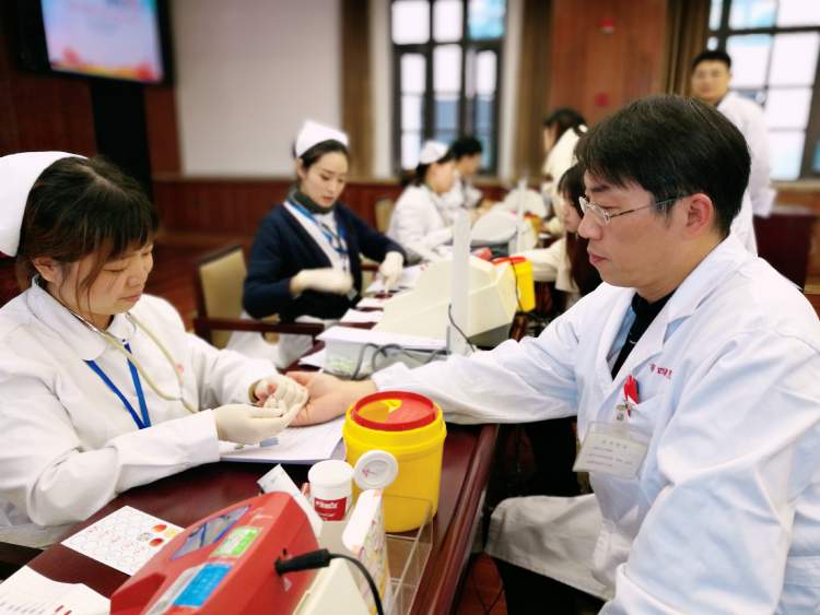 与薛医生相比,金医生的献血经验比较不足,仅仅才两次,“很惭愧,平时工作太忙,消息也比较闭塞,这次就在医院献血,我立马就报名了。”金医生在排队等待的过程中,还是不断地用手机在处理工作。