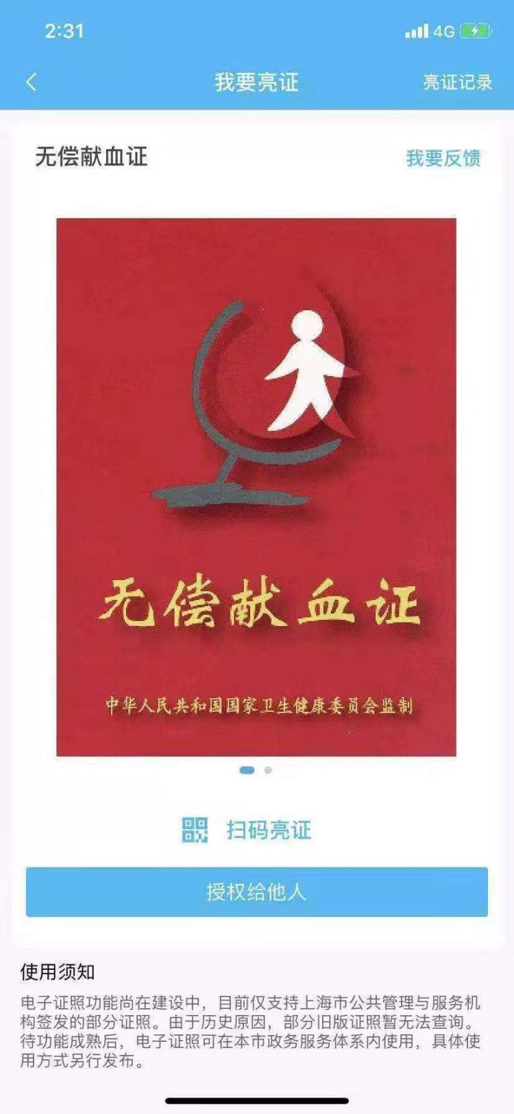 今天,记者从上海市血液管理办公室了解到,沪上无偿献血证电子化工作已成功上线,通过“随申办市民云”APP,就可以在线领取“电子无偿献血证”。