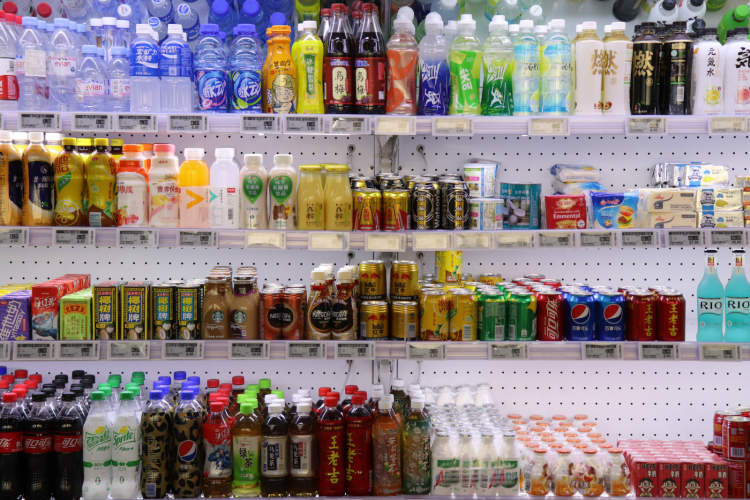 菜市场内的饮品区