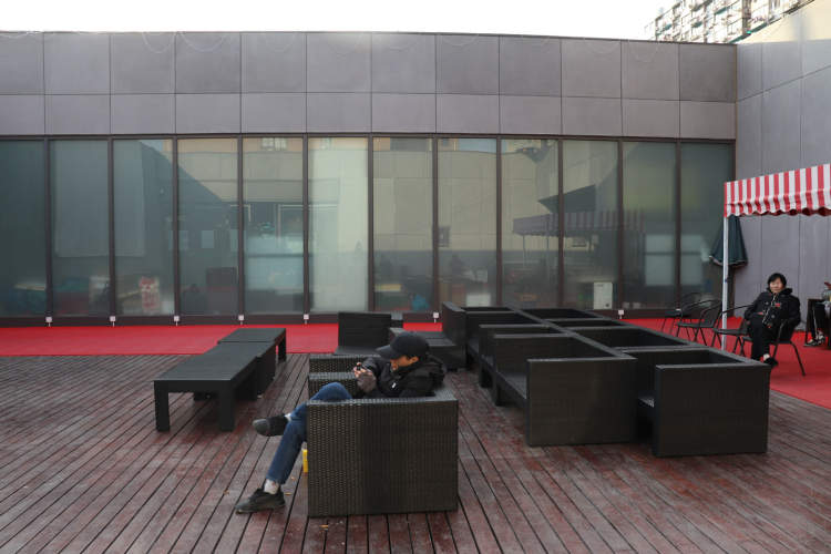 现在,位于二楼菜场外的这块露天空间,摆放着几排藤椅和一些易于折叠的桌子。并非是买菜高峰的工作日下午三点,这些露天藤椅上也不缺人坐。