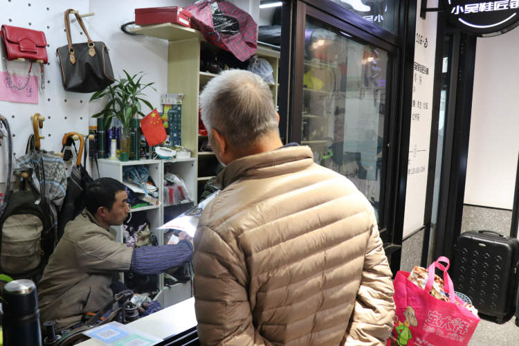 吴师傅鞋匠铺摊头,一位大爷过来修东西