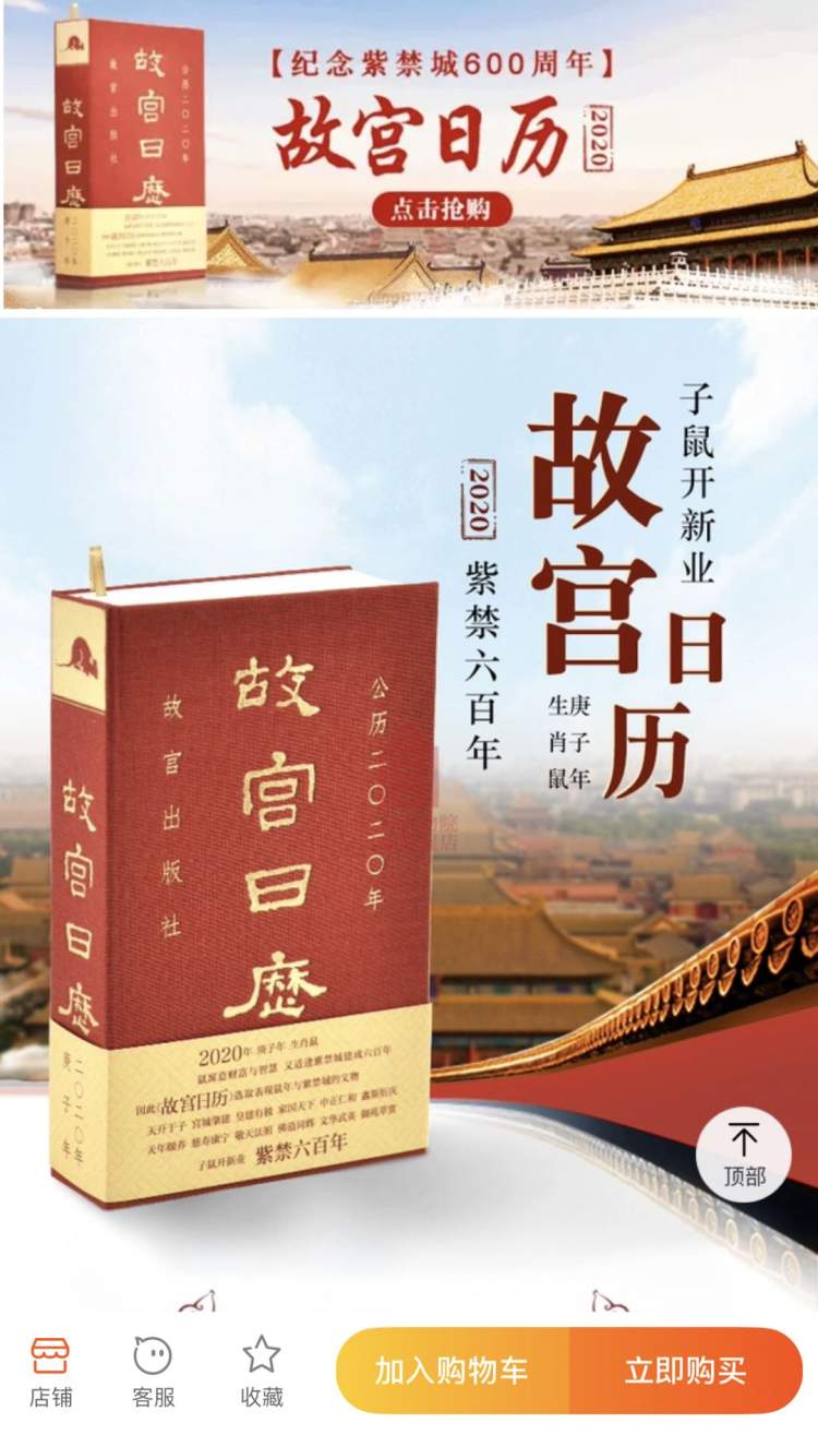 自2009年起,故宫出版社每年出版发行《故宫日历》,介绍博物院的藏品及其文化和史料,是最受欢迎的纪念品之一,185万件藏品分门别类一日一会,源源不绝。据了解,2020年《故宫日历》一共出了十个版本,其中大多是与博物馆合作。价格也从59元到96元不等。而2020年首发的《故宫酒历2020》均为限定典藏版,目前定价168元。