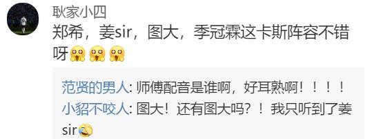 不仅制作团队厉害,这次的配音团队同样优秀。不少网友听出了姜广涛(《琅琊榜》《泰坦尼克号》《青云志》)、图特哈蒙(《大护法》《全职高手》)、季冠霖(《阿凡达》《疯狂动物城》)等配音界大神的声音。