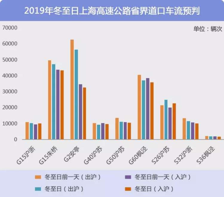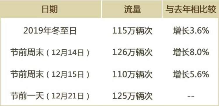 冬至日期间本市高速及地面道路省界道口总流量59万辆次,高速公路分担省界道口约70%流量。