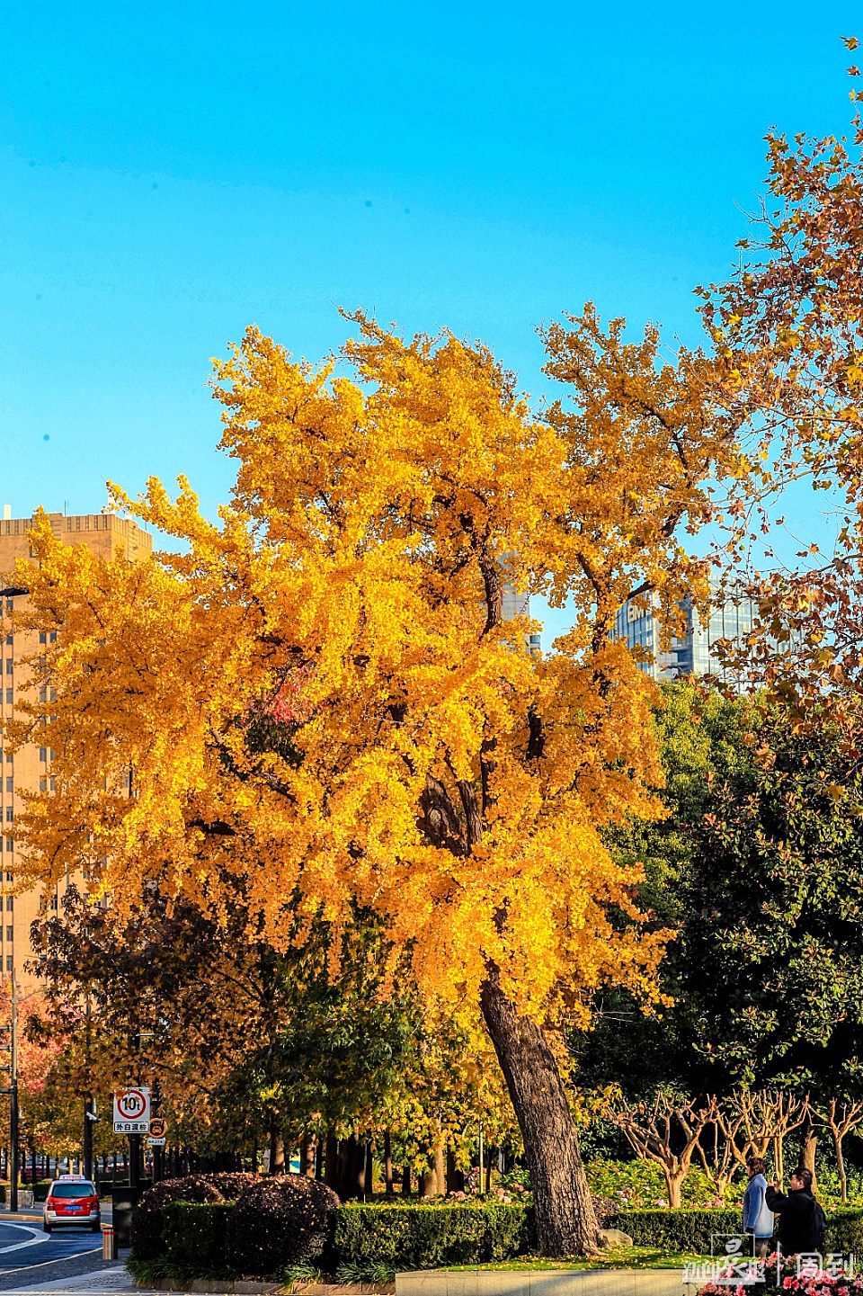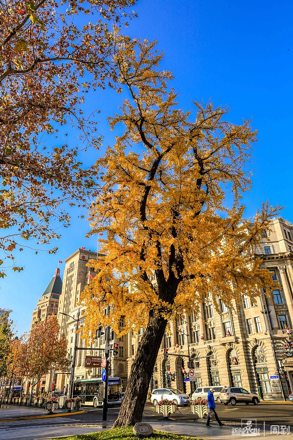 外滩靠近北京东路口有棵古银杏树,这两天,整株树通体“金黄”,在阳光的照射下,愈发璀璨。