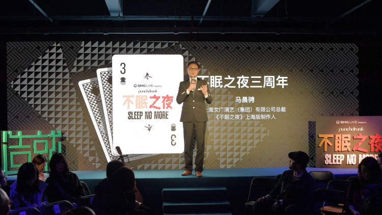 浸入式戏剧《不眠之夜》上海版制作人、上海文广演艺(集团)有限公司总裁马晨骋今天为《不眠之夜》三周年致辞