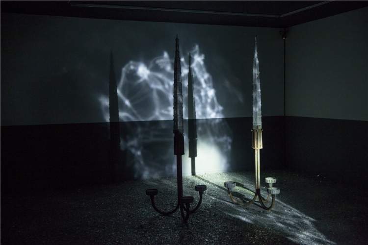 将中国古典美学融入空间装置,是管怀宾作品的特性之一。本次展出的《流隙》以诗意化的情怀将物换星移的某种时刻唤醒。一块木板如桥般将观者引入《破晓》,桥下是一片“波光粼粼”,低头细看,原是满地碎水瓶内胆。