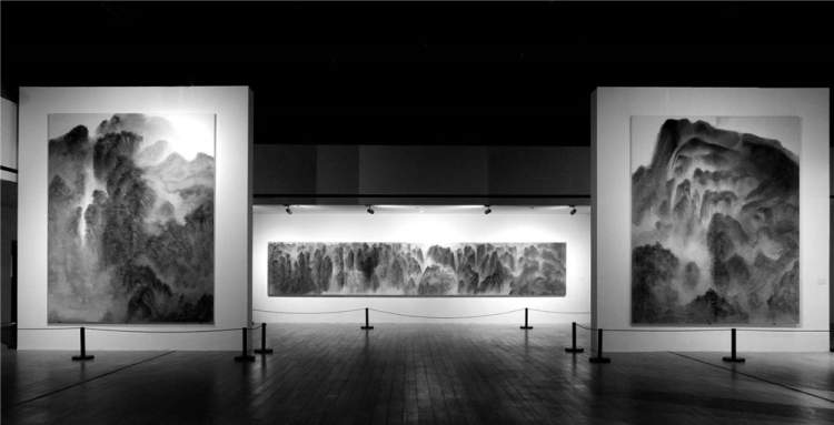 穿过序厅,映入眼帘的是徐龙森水墨山水《大物》顶天立地,《云山苍苍》水润横亘,在美术馆高层空间内倾泻而下。旁边,是王公懿备受佳誉的《辋川图错综》,灵动恣意。