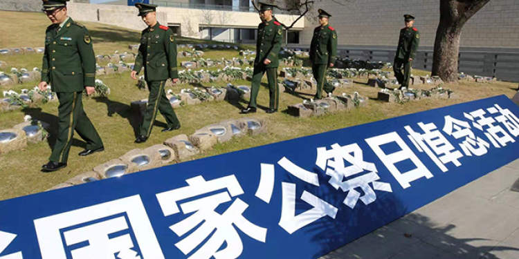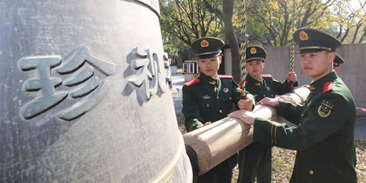 12月13日,我国第六个南京大屠杀死难者国家公祭日,武警上海总队执勤第五支队组织官兵来到淞沪抗战纪念馆,与驻地各界群众一起悼念遇难同胞和抗战先烈,提醒不忘屈辱历史,牢记职责使命,矢志强军兴军。
